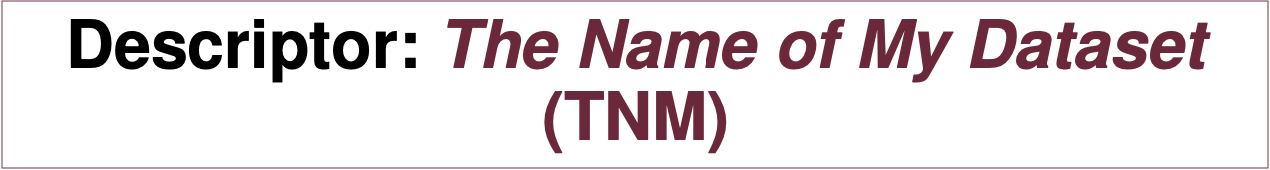 Descriptor articles (the main type of article published) describe the published (or soon-to-be-published) dataset. In essence, this is a detailed manual on the dataset — what it is and how to use it. Each article will follow a set format for predetermined, well-defined sections. Metadata will also be collected to further classify the data that is being described, as well as funding sources, etc. The purpose of a Descriptor article is to: